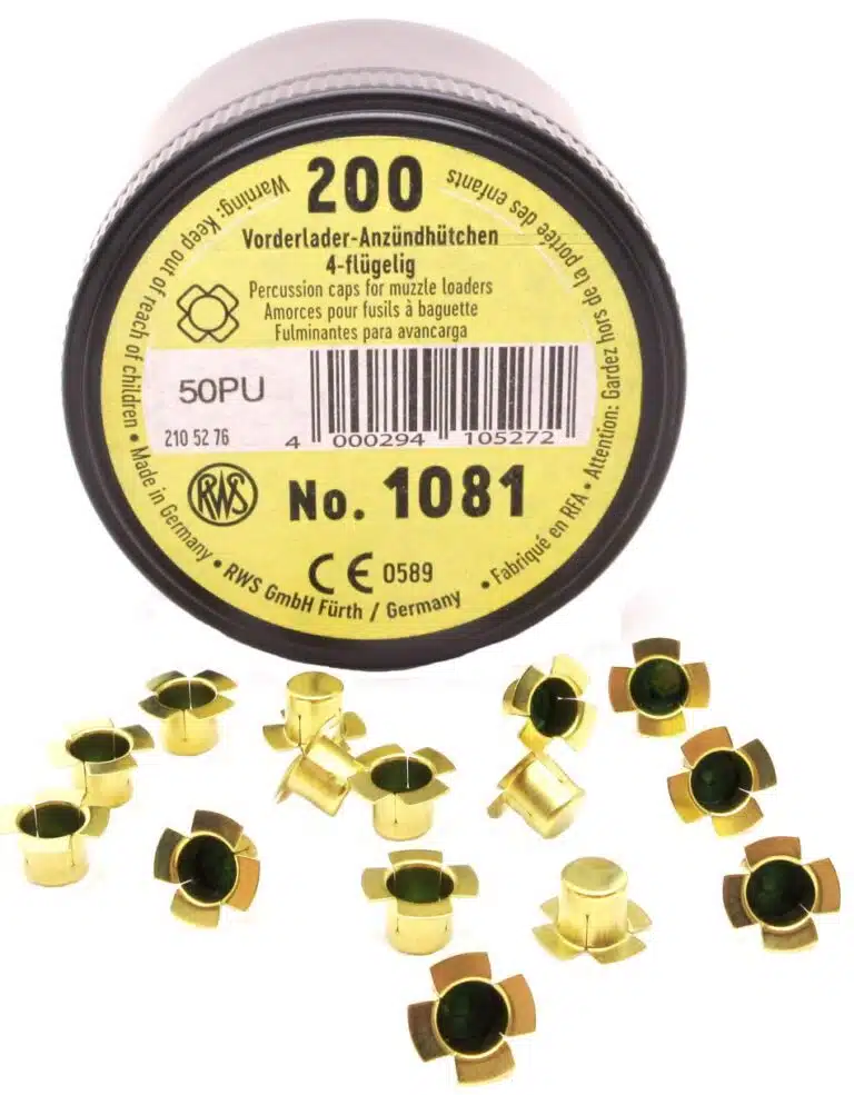 The RWS 4 wing Musket caps are German made and the best on the market. These caps are made of soft copper with a special waterproofing that give them reliability in all weather conditions.